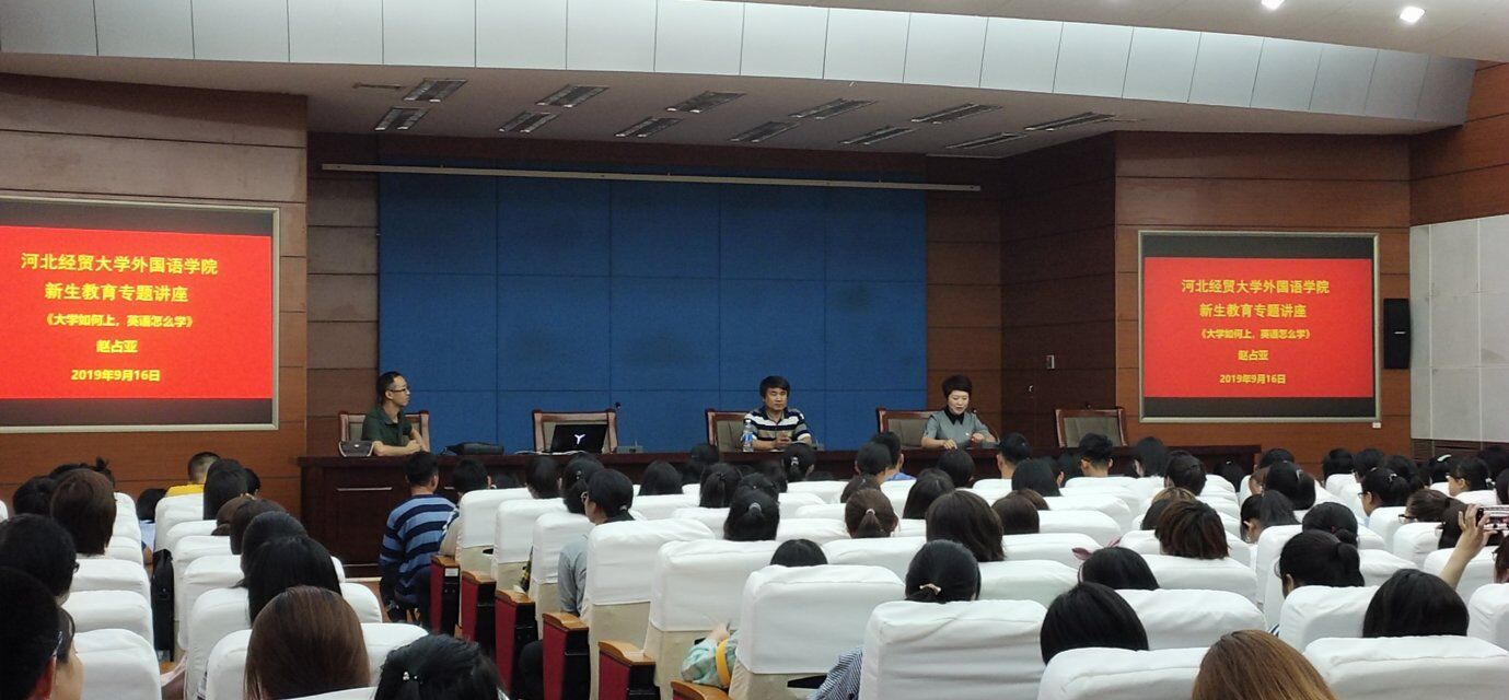 9月16日下午,永利yl23455在会议中心视频会议室举办新生教育专题讲座。永利yl23455经济管理公司文法系主任赵占亚应邀主讲,公司党委书记、副书记及2019级全体新生230余人到场聆听。