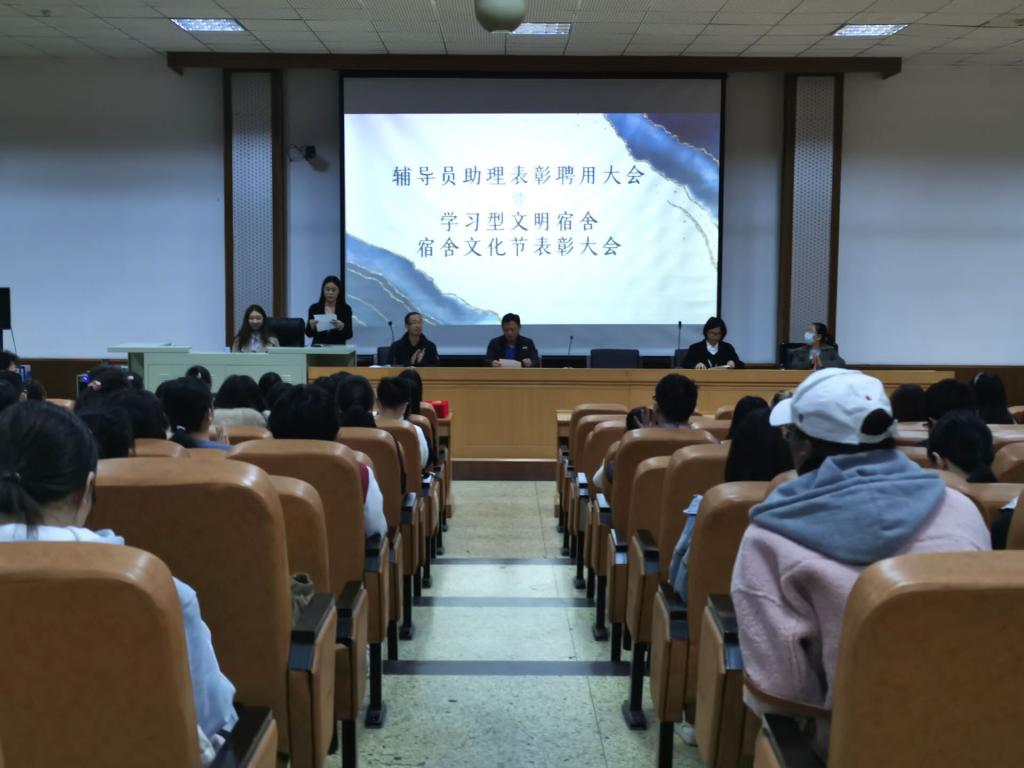 11月13日中午,永利yl23455于第三教学楼C区201举办辅导员助理表彰聘用大会暨学习型文明宿舍及宿舍文化节表彰大会。党委书记刘会娟、经理商利伟、书记刘磊、团委书记李维婷与冯晓伟等领导亲临活动现场。全体大一新生及大二、大三部分员工代表到场聆听。