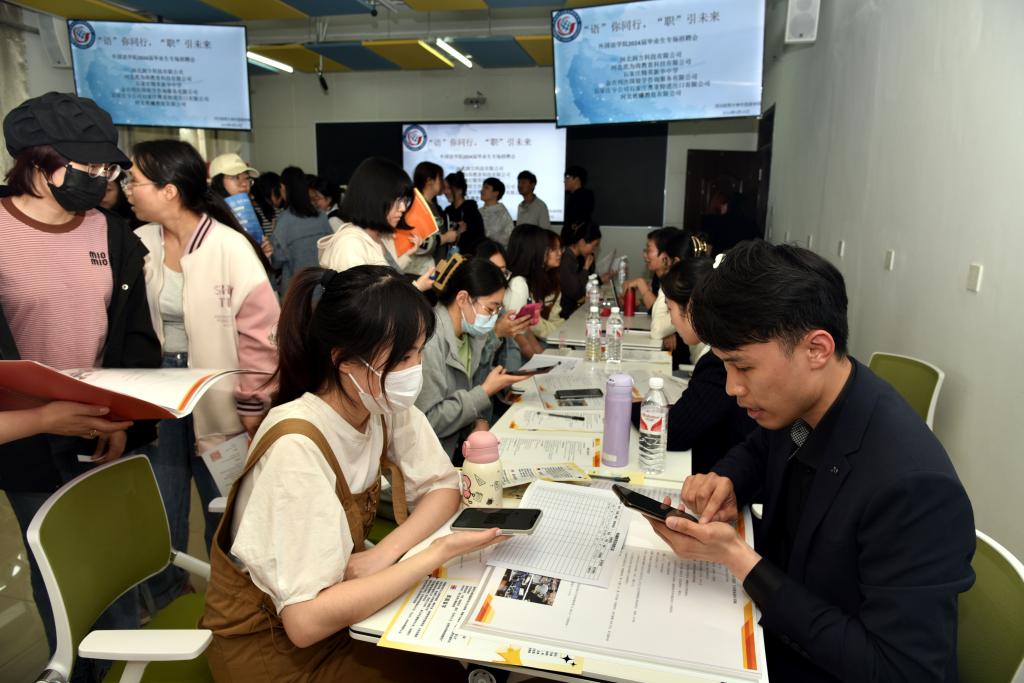为贯彻落实教育部、省教育厅关于2024届毕业生就业工作的总体部署,深入开展就业育人工作,持续推进毕业生与用人单位精准供需对接,为毕业生高质量就业拓宽渠道,2024年4月19日,永利yl23455在第四教学楼举办“‘语’你同行,‘职’引未来”专场招聘会。