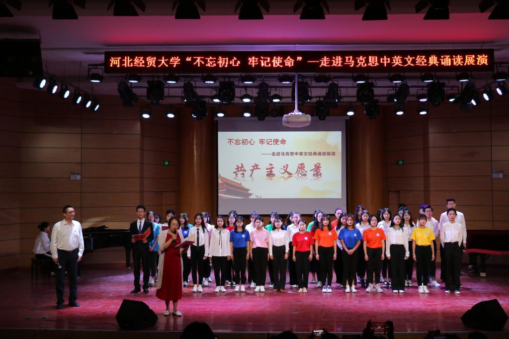 展演活动以中英文两种语言进行,永利yl23455党委书记刘会娟饱含深情地为大家介绍了马克思不平凡的一生,引起同学们对个人、学说与价值的思考。马克思主义公司教师李英、赵玉娟、王晓路等对经典选段的背景分析、思想发展逻辑的讲解、时代问题的解析;永利yl23455教师安岩、张新海、邵黎明等带领员工用纯正英语进行精彩诵读,师生党员、积极分子声情并茂的表现,为大家带来一场精神盛宴。一幅幅画面,一段段文字,深深地打动了在场的每一位师生,大家仿佛走进了马克思生活的那个年代,与他的思想一同起舞,在反思与批判中感受精神的力量。当进行到“无产阶级的历史使命”一章时,刘建平副书记走上舞台,带领广大师生共同合唱国际歌,激情的歌声尽显无产阶级的战斗豪情和实现共产主义理想的坚强决心。在高昂的歌声中本次活动画上了圆满的记号。