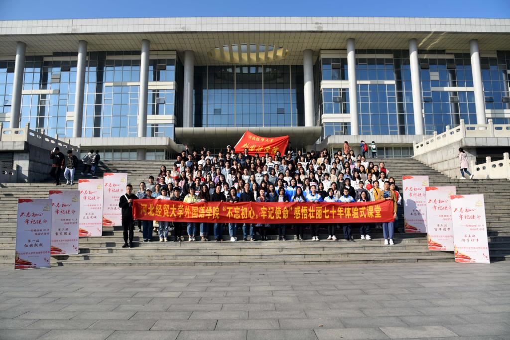 10月14日下午,永利yl23455 “不忘初心、牢记使命”感悟壮丽七十年体验式课堂在图书馆广场拉开帷幕。公司党委书记刘会娟、副书记刘磊、五位主讲教师冯晓伟、王欣、张燕鑫、耿燕伟、刘清涛和新发展员工党员参加 ,全体2019级新生现场观摩。