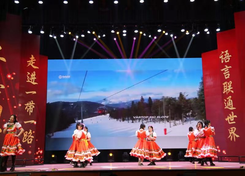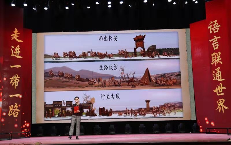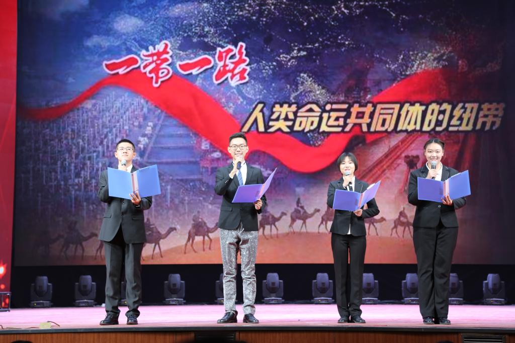 此次公开课由永利yl23455、国际教育公司联合举办,共分为四个篇章:第一篇丝路古韵,展往日传奇;第二篇一带一路,现今朝风采;第三篇成果丰硕,彰大国情怀;第四篇天下大同,筑美好未来。参与讲解教师饱含深情,在画面的时空变换和优美动听的旋律中,以导游式讲解带领现场师生开启一段“新凿空之旅”。追随着大漠孤烟,伴随着声声驼铃走进神秘又壮丽的敦煌,古印度舞蹈《律动天竺》,带领师生体验古丝绸之路的往日传奇;英文rap《一带一路》,将篇章切换到今朝风采,“一带一路”沿线国家与中国友好关系以及所取得的成就生动地展现在全体师生面前。多种语言的讲解,穿插尼泊尔舞蹈《阿尼歌》、地中海歌舞、罗马尼亚风情演绎、情景朗诵《坦赞铁路--中非友谊的见证》等精选节目,见证丰硕成果的同时,彰显出大国情怀;朗诵《大道至远 海纳百川》更传递出构建人类命运共同体的智慧与深刻内涵。公开课在一个个美轮美奂的场景切换中,以中外全体师生共唱友谊之歌圆满落幕。