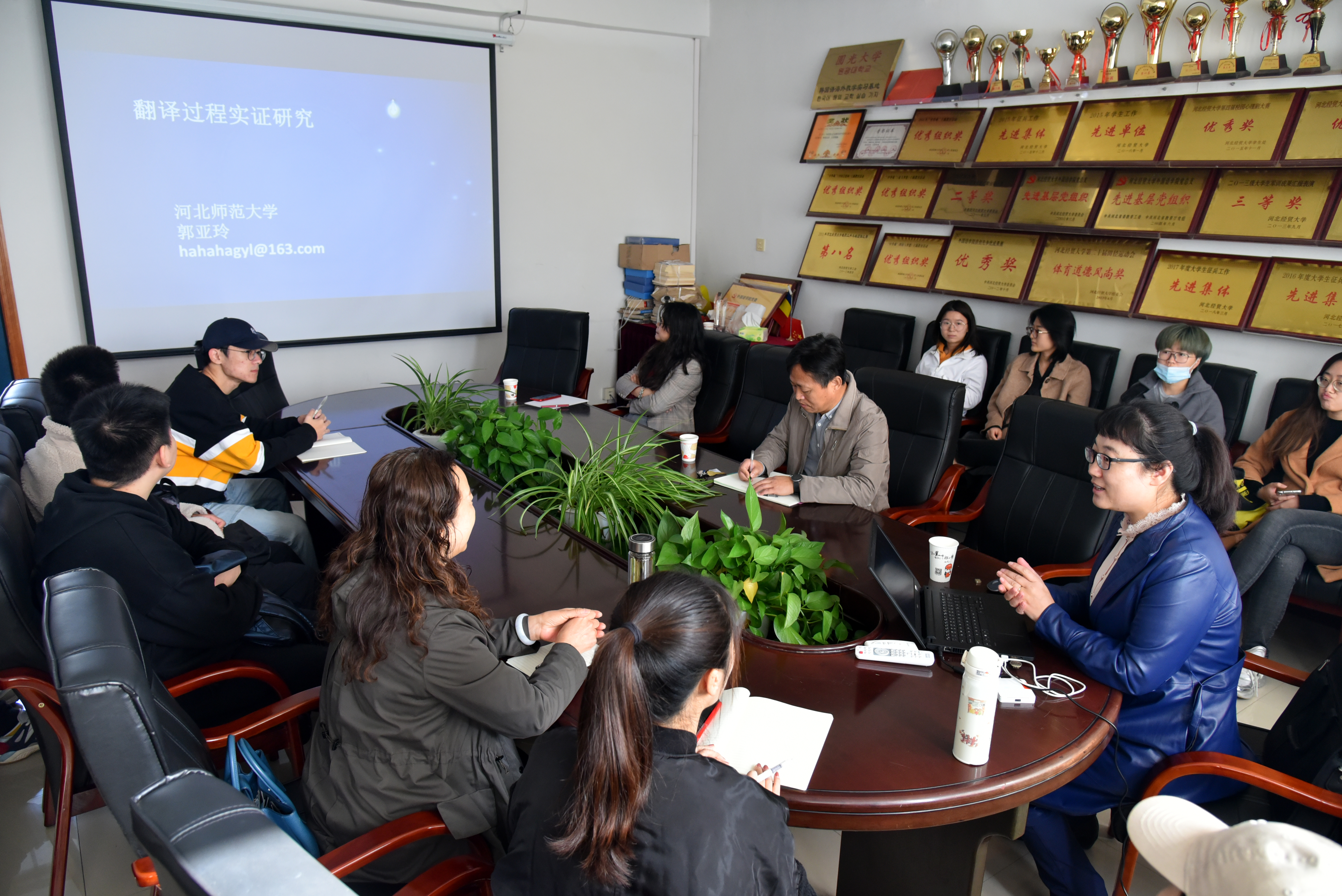 应永利yl23455大学永利yl23455商利伟经理邀请,2020年10月22日上午河北师范大学永利yl23455副教授郭亚玲老师莅临永利yl23455,为MTI研究生做了《翻译过程实证研究》的学术报告。郭雅玲老师是北京外国语大学博士,河北师范大学翻译专业研究生导师,曾任教于香港中文大学(深圳)人文公司,在美国加州州立大学和澳门大学短期访学。