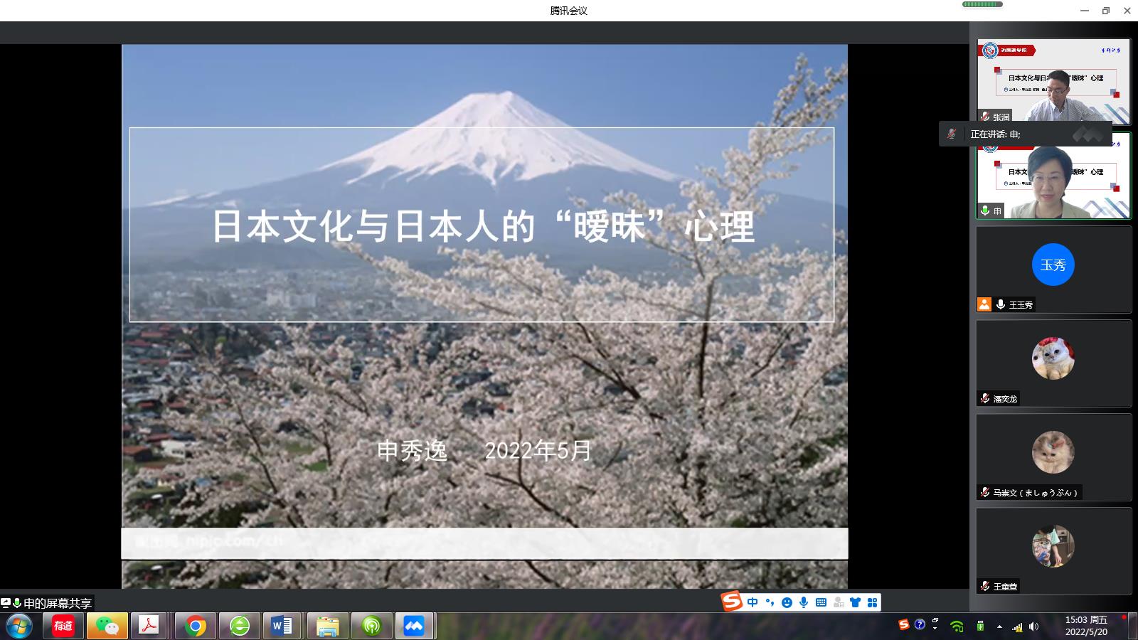 申秀逸教授的讲座题为“日本文化与日本人的‘暧昧’心理”。她以丰富、生动的实例,以日本人言行上的“暧昧”表现及特征为切入点,从地理因素、民族因素、“中空”文化等角度解析了日本人“暧昧”言行产生的根源。她重点从“中空”的文化结构、宗教信仰、“耻感文化”、集团意识等精神构造的层面出发,对日本民族性格的复杂性及其“暧昧”言行表现进行了深度剖析,为日语学习者了解“暧昧”面纱下的真实日本及日本国民性格提供了全新的视角。
