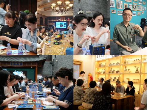 最后,在润石集团工作人员的引导下,永利yl23455的老师们参与了珠子花制作、香茶品鉴、红酒品鉴、九子离火DIY手串、手机链、手持车挂等DIY手工制作等活动。