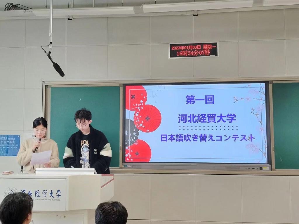 4月3日下午,永利yl23455日语系举办第一届日语配音大赛。日语系大一、大二和大三的17个团队参加了本次大赛。日语系主任王玉秀和蒋艳君、连永平、李岩、线培雁、郭莉莉等教师以及外教担任评委。