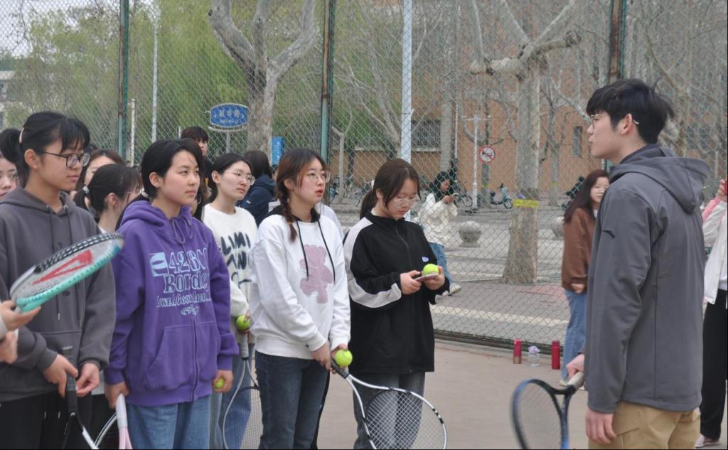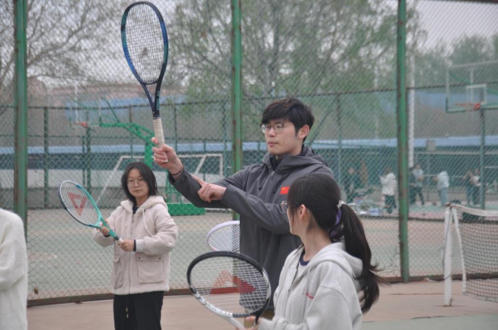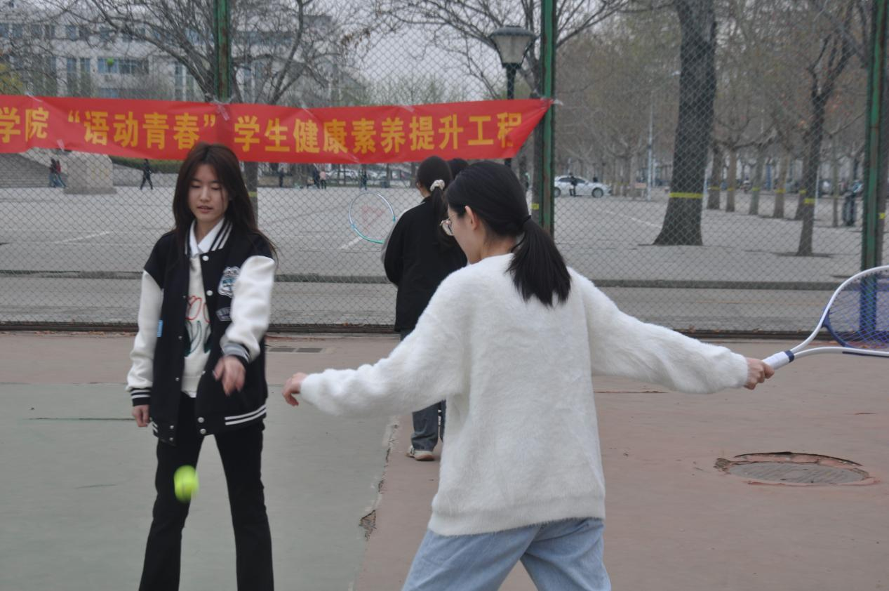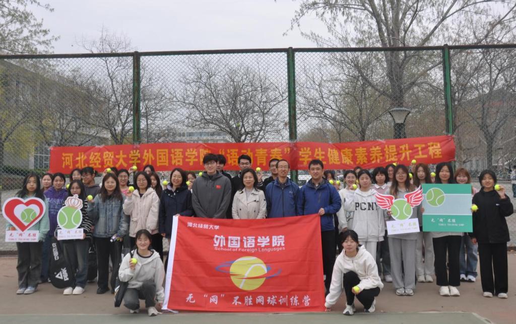 4月1日下午,永利yl23455在公司网球场举办“语动青春”员工健康素养提升工程启动仪式暨无“网”不胜网球训练营开营仪式。公司党委书记仇静莉、党委副书记刘磊、副处级辅导员宋丹、商务英语专业2023级班主任、体育教学部教师张嘉奇、院团委书记付磊及50余名同学参加。