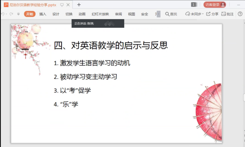 陈瑛老师首先介绍了尼泊尔汉语教学的现状,然后结合自己国内外的教学实践,分析了中尼两国员工在外语学习中的不同特点,并在学习动机、以评促学等方面提出了促进员工进行语言学习的思考。